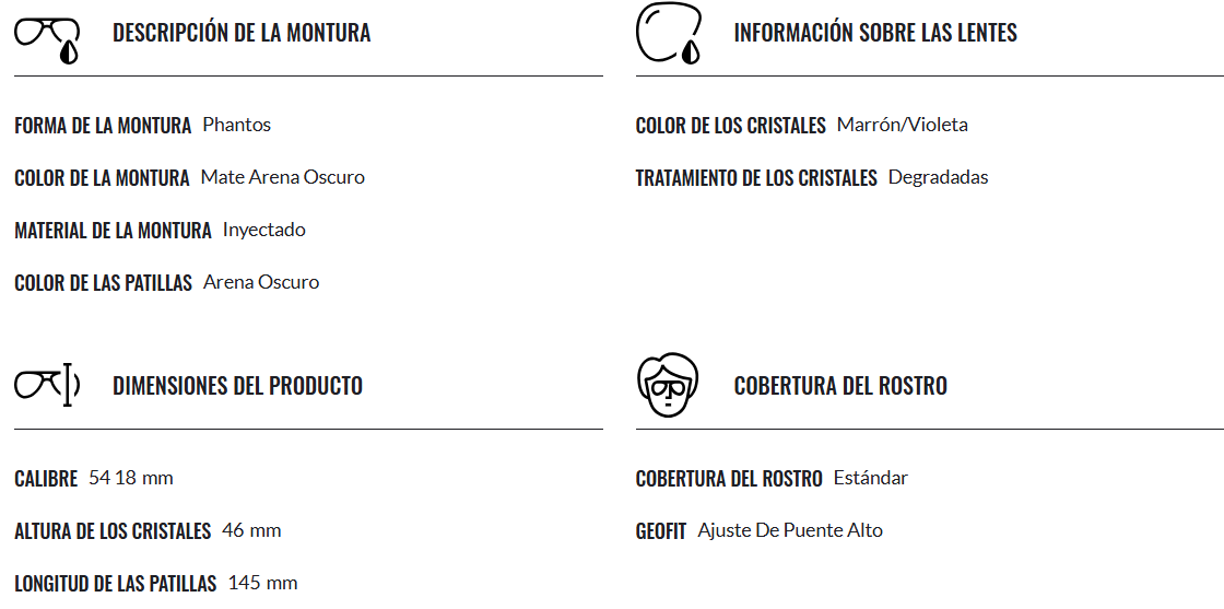 - Lentes Disponibles: Clásicos, Degrades, Espejados.