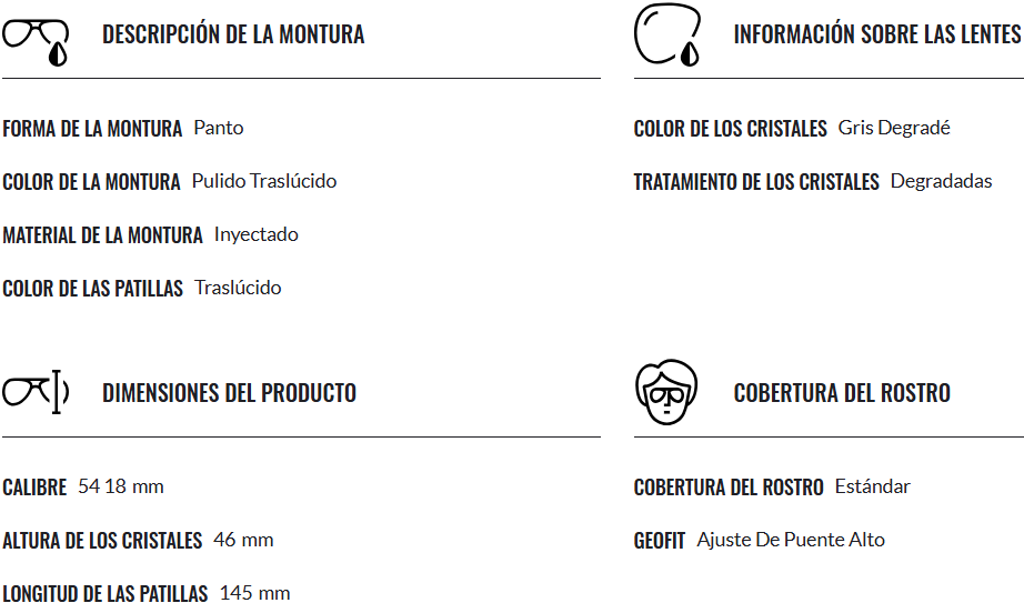 - Lentes Disponibles: Clásicos, Degrades, Espejados.