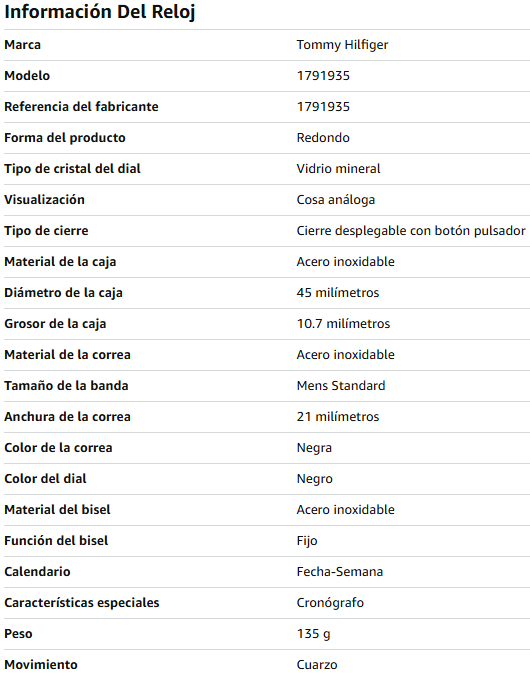 El reloj Tommy Hilfiger 1791935 de la colección Mason es una pieza masculina que combina elegancia y funcionalidad. Su caja de acero inoxidable de 44 mm y correa de eslabones en tono negro ionizado ofrecen una estética moderna y sofisticada. La esfera negra presenta detalles plateados y subesferas que indican día y fecha, además de un formato de 24 horas. Equipado con un movimiento de cuarzo, cristal mineral resistente a rayaduras y resistencia al agua de hasta 50 metros, es ideal para el uso diario. Este reloj es un complemento versátil que se adapta tanto a entornos formales como informales.
