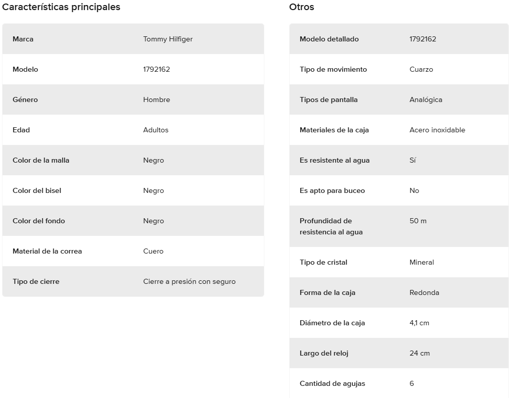 El Tommy Hilfiger TH85 Chronograph 1792162 captura la esencia del estilo urbano moderno con un diseño sobrio y contundente: su caja de acero inoxidable de 41 mm combina con una esfera negra elegante, correa de cuero negro y funciones de cronógrafo y fecha integradas — todo ello movido por mecanismo de cuarzo de alta fiabilidad. Con resistencia al agua de 5 ATM, este reloj es tanto un accesorio de moda como un aliado funcional para el ritmo del día a día en la ciudad.