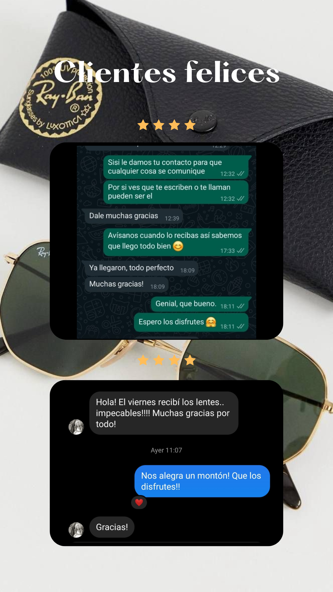 - Lentes Disponibles: Clásicos, Degrades, Espejados.